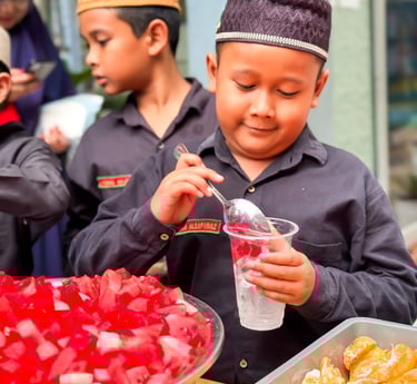 Para siswa MIS Bina Santri Medan mengikuti kegiatan Fruit Day, menikmati aneka buah segar sambil belajar tentang pentingnya nutrisi dan vitamin bagi kesehatan tubuh. Dengan kegiatan ini, siswa semakin memahami manfaat pola makan sehat serta membiasakan diri mengonsumsi makanan bernutrisi.